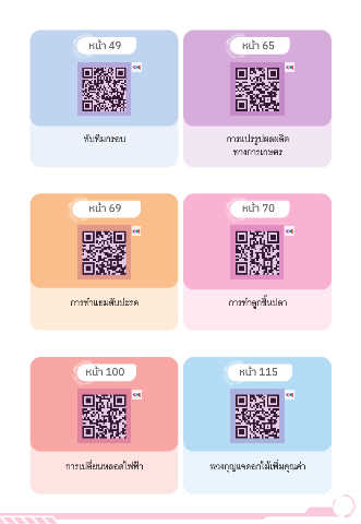 ้ หนา 49 หนา 65 ้ ทับทิมกรอบ การแปรรูปผลผลิต ทางการเกษตร ้ ้ หนา 69 หนา 70 การทำาแยมสับปะรด การทำาลูกชิ้นปลา ้ หนา 100 หนา 115 ้ การเปลี่ยนหลอดไฟฟ้า พวงกุญแจดอกไม้เพิ่มคุณค่า