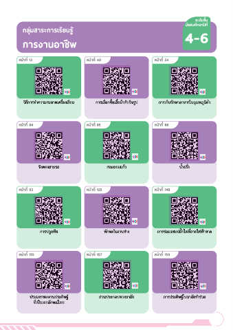 วิธีการทำความสะอาดเครื่องเรือน การเลือกซื้อเสื้อผ้าสำเร็จรูป การเก็บรักษาอาหารในอุณหภูมิต่ำ การประดิษฐ์โบมาลัยคล้องคอ ขั้นตอนการทำแป้นมาลัย การพับกลีบกุหลาบมอญ
