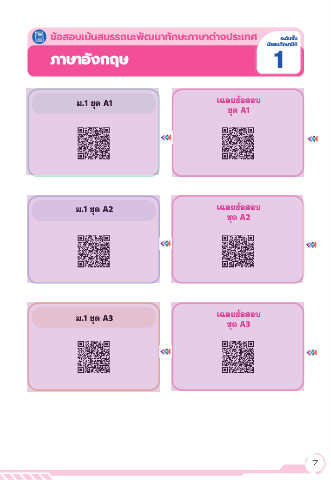 ั ข้้อสอบเน้นสมรรถนะพัฒนาทักษะภาษาต่างประเทศ ระดัับชั้�น ั มัธยมศึกษาปที� ี ภาษาอังกฤษ 1 ม.1 ชุด A1 เฉลยข้อสอบ ชุด A1 ม.1 ชุด A2 เฉลยข้อสอบ ชุด A2 ม.1 ชุด A3 เฉลยข้อสอบ ชุด A3 7