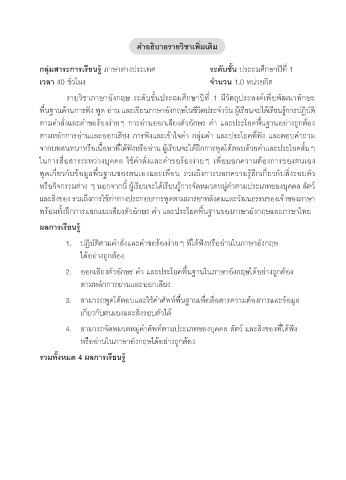 รายวิชาภาษาอังกฤษ ระดับชนประถมศึกษาปีท 1 มีวัตถุประสงค์เพอพัฒนาทักษะ