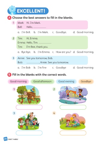 a. Bye bye. b. I’m Emma. c. How are you? d. Good morning.