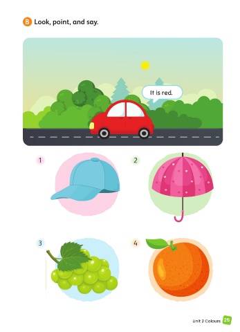 B Look, point, and say. It is red. 1 2 3 4 Unit 2 Colours 25