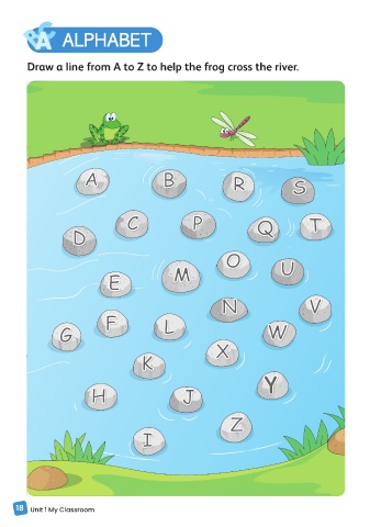 ALPHABET ALPHABET Draw a line from A to Z to help the frog cross the river. 18 Unit 1 My Classroom