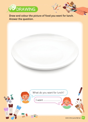 Draw and colour the picture of food you want for lunch.