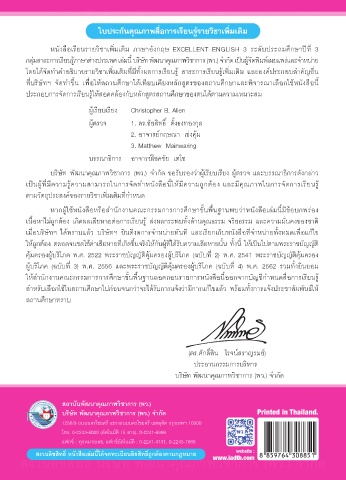 ตามวัตถุประสงค์ของรายวิชาเพิ�มเติมที�กำหนด หนังสือเรียนรายวิชาเพิ่มเติม ภาษาอังกฤษ EXCELLENT ENGLISH 3