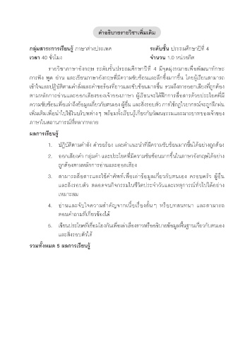 กลุ่มสาระการเรียนรู้ ภาษาตางประเทศ ระดับชั้น ประถมศึกษาปีที 4