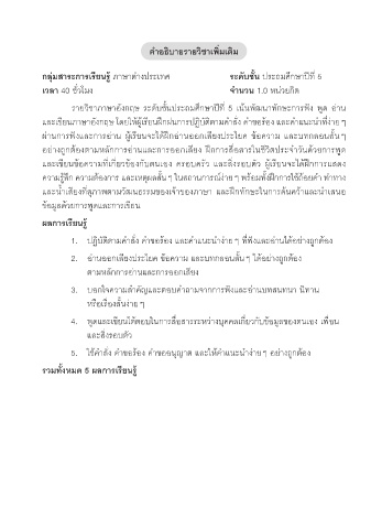รายวิชาภาษาอังกฤษ ระดับชนประถมศึกษาปีท 5 เนนพัฒนาทักษะการฟัง พด อาน