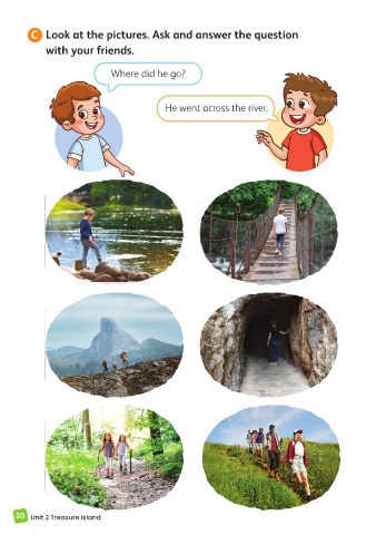 สงวนลิขสิทธิ์ บริษัท พัฒนาคุณภาพวิชาการ (พว.) จำากัด C Look at the pictures. Ask and answer the question with your friends. Where did he go? He went across the river. สงวนลิขสิทธิ์ บริษัท พัฒนาคุณภาพวิชาการ (พว.) จำากัด 30 Unit 2 Treasure Island