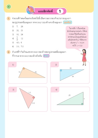 1. จำนวนที่กำหนดในแต่ละข้อต่อไปนี้ เป็นความยาวของด้านประกอบมุมฉาก
