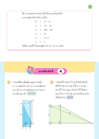 ดังนั้น ขอบตึกทั้งสองอย่ห่างกัน 12 + 9 = 21 เมตร