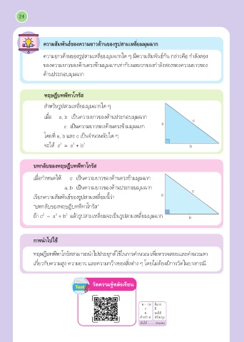 ของความยาวของด้านตรงข้ามมุมฉากเท่ากับผลบวกของกำาลังสองของความยาวของ