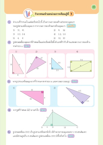 2. รูปสามเหลี่ยมมุมฉากที่กำหนดในแต่ละข้อต่อไปนี้ ตัวเลขที่กำกับด้านแสดงความยาวของด้าน