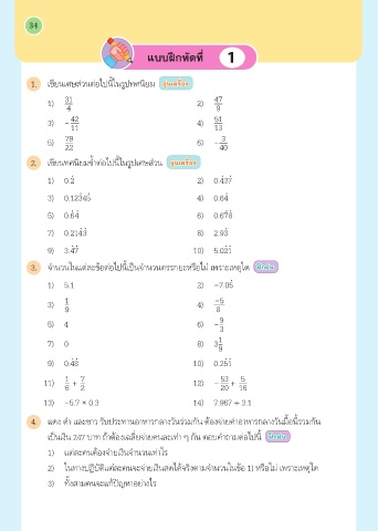 2. เขียนทศนิยมซำ้�ต่อไปนี้ในรูปเศษส่วน อุ่นเครือง