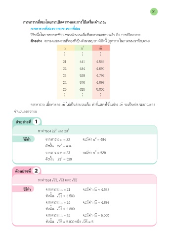 การหารากที่ส่องโดยการเป็ิดตารางและการใช้้เครองคำนวณ