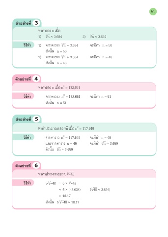 วิธีีทำ 1) จ�กต�ร�ง √n ≈ 3.684 จะมค� n = 50