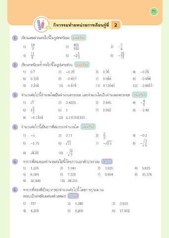 1. เขียนเศษส่วนต่อไปนี้ในรูปทศนิยม อุ่นเครือง
