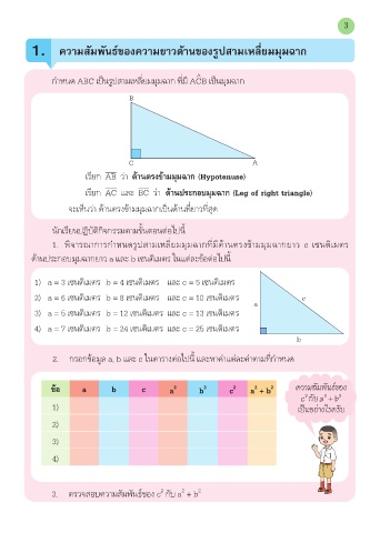1. ความสัมพันธ์ของความยาวด้านของรูปสามเหลี่ยมมุมฉาก