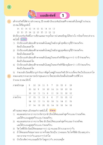 2) คะแนนสอบกลางภาคภาษาไทย นักเรียนได้คะแนนต่าสุดกี่คะแนน จำานวนกี่คน