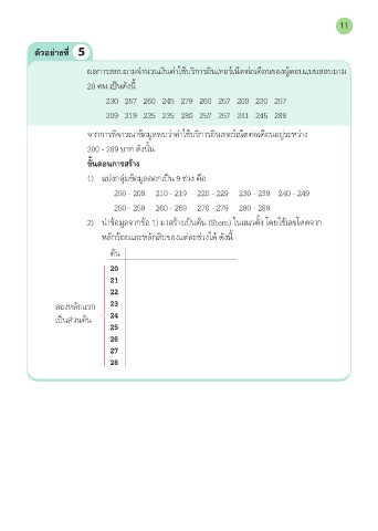 2) นำาข้อมูลจากข้อ 1) มาสร้างเป็นต้น (Stem) ในแนวตั้ง โดยใช้เลขโดดจาก