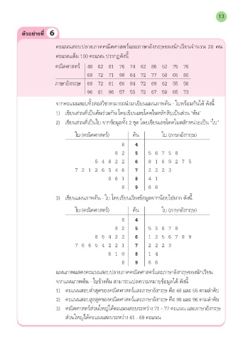 จากคะแนนสอบทั้งสองวิชาสามารถนำามาเขียนแผนภาพต้น – ใบพร้อมกันได้ ดังนี้