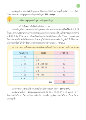 เรียกผลต่างระหว่างค่าสูงสุดและค่าต่าสุดของข้อมูลว่า พิสัย (Range)