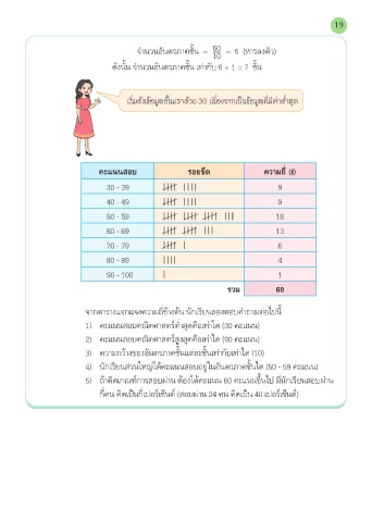 ดังนั้น จำานวนอันตรภาคชั้น เท่ากับ 6 + 1 = 7 ชั้น