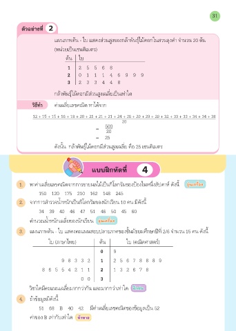 3. แผนภาพต้น - ใบ แสดงคะแนนสอบปลายภาคของชั้นมัธยมศึกษาปีที่ 2/6 จำานวน 15 คน ดังนี้