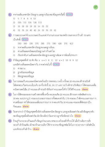 5. หาค่าเฉลี่ยเลขคณิต มัธยฐาน และฐานนิยมของข้อมูลต่อไปนี้ ฝ ึ ฝกฝน