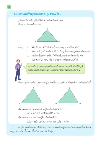 พิจารณารูปสามเหลี่ยม ABC และรูปสามเหลี่ยม MON ซึ่่่งเท่ากันทุกประการ ดังรูปต่อไปนี้