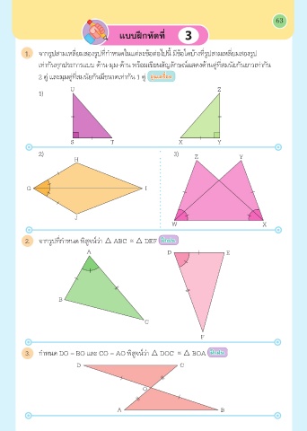 2. จากรูปที่กำหนด พสูจนว่า △ ABC = △ DEF ฝ ฝ ึ กฝน