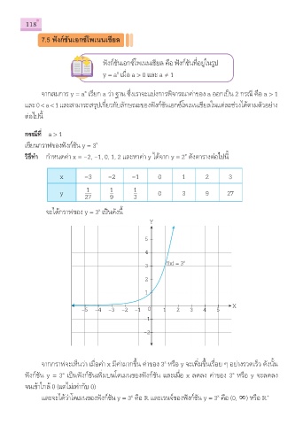 จากกราฟจะเห็นว่า เมื่อค่า x มีค่ามากขึ้น ค่าของ 3 หรือ y จะเพิ่มขึ้นเรื่อย ๆ อย่างรวดเร็ว ดังนั้น