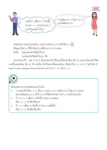3. ถ้า a > 1 เมื่อค่า x เพิ่มขึ้น ค่าของ y จะเพิ่มขึ้น