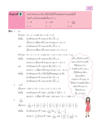 เพราะว่า 2 เป็นรากที่ 4 ของ 16 และ 2 Ö 16 > 0 และ n เป็นจำานวนเต็ม