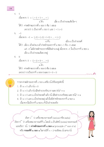 และเรียก √a ว่า ค่าหลักของรากที่ n ของ a (principle n root of a)