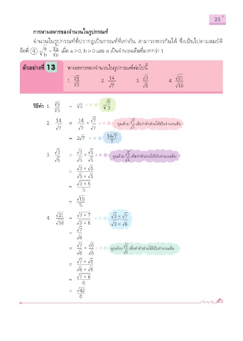 2. 14 = 14 Ö √7 คูณด้วย เพื่อทำาตัวส่วนให้เป็นจำานวนเต็ม