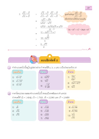 = (√11 - √7) 2 เพื่อทำาตัวส่วนให้เป็นจำานวนเต็ม
