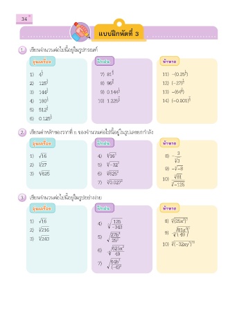 2. เขียนค่าหลักของรากที่ n ของจำานวนต่อไปนี้อยู่ในรูปเลขยกกำาลัง