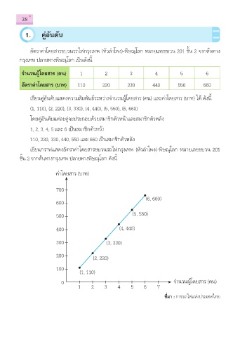 เขียนคู่อันดับแสดงความสัมพันธ์ระหว่างจํานวนผู้โดยสาร (คน) และค่าโดยสาร (บาท) ได้ ดังนี้