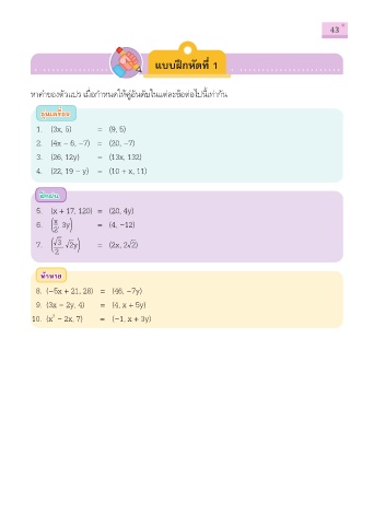 หาค่าของตัวแปร เมื่อกําหนดให้คู่อันดับในแต่ละข้อต่อไปนี้เท่ากัน