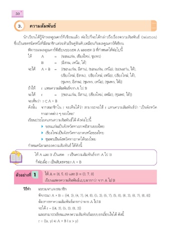 นักเรียนได้ร้จักผลคูณคาร์ทีเซียนแล้ว ต่อไปก็จะได้กล่าวถึงเร่องความสัมพันธ์ (relation)