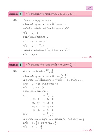 เราสามารถหาค่า x ได้ ในทุกค่าของ y ยกเว้นเมื่อ 3y – 2 = 0 นั่นคือ y = 2