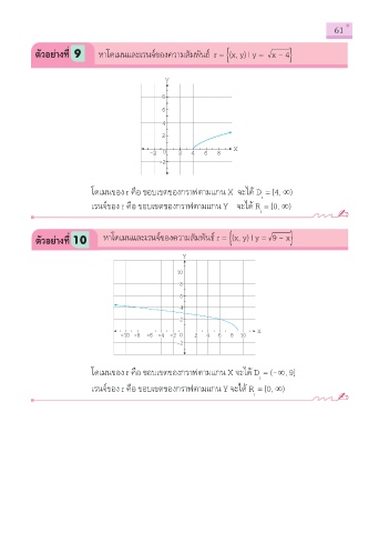 ตัวอย่างที่ 10 หาโดเมนและเรนจ์ของความสัมพันธ์ r = (x, y) | y = √9 - x }