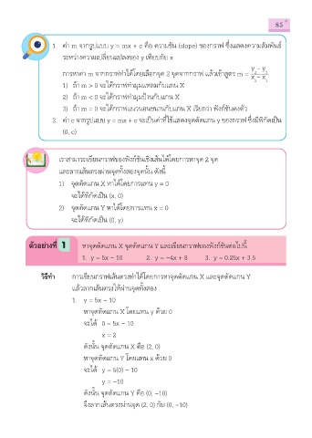 การหาค่า m จากกราฟทําได้โดยเลือกจุด 2 จุดจากกราฟ แล้วเข้าสูตร m = x - x 1
