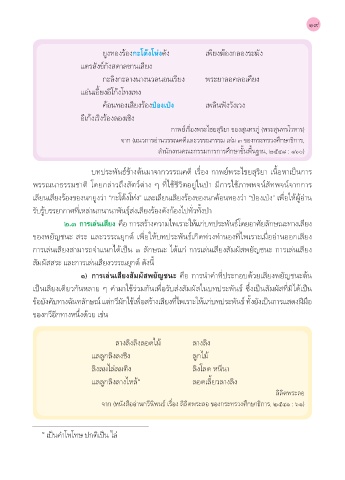 ๒.๓ การเล่นเสียง คือ ก�รสร้�งคว�มไพเร�ะให้แก่บทประพันธ์โดยอ�ศัยลักษณะท�งเสียง