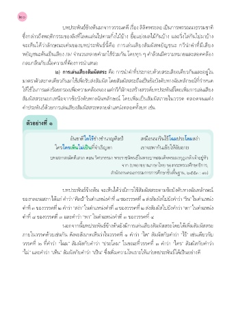 ของกลอนเสภ� ได้แก่ คำ�ว่� “ศิลป์” ในตำ�แหน่งคำ�ที่ ๘ ของวรรคที่ ๑ ส่งสัมผัสไปยังคำ�ว่� “ริน” ในตำ�แหน่ง