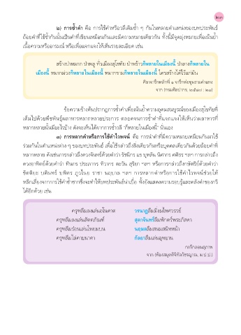 ๒) การซำ้าคำา คือ ก�รใช้คำ�หรือวลีเดิมซำ้� ๆ กันในหล�ยตำ�แหน่งของบทประพันธ์