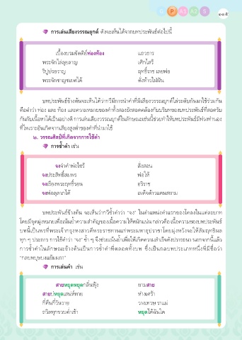 กันกับเนื้อหาได้เป็นอย่างดี การเล่นเสียงวรรณยุกต์ในลักษณะเช่นนี้ช่วยทำาให้บทประพันธ์มีท่วงทำานอง