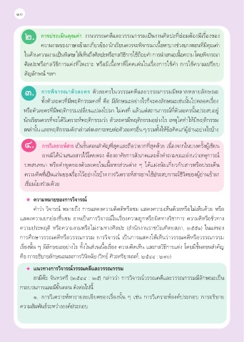 ในด้านความงามเป็นพิเศษ ให้เห็นถึงศิลปะหรือกลวิธีการใช้ถ้อยคำา การนำาเสนอเนื้อความ โดยพิจารณา
