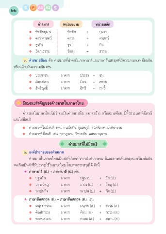❁ คำาสมาสที่มีสนธิ เช่น กรกฎาคม วิทยาลัย แสนยานุภาพ