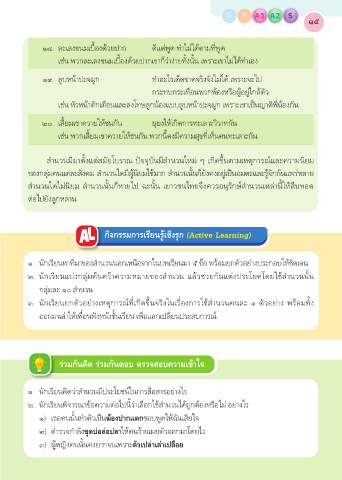 ๒. นักเรยนแบงกลุมคนควาความหมายของสํานวน แลวชวยกันแตงประโยคโดยใชสํานวนนั้น